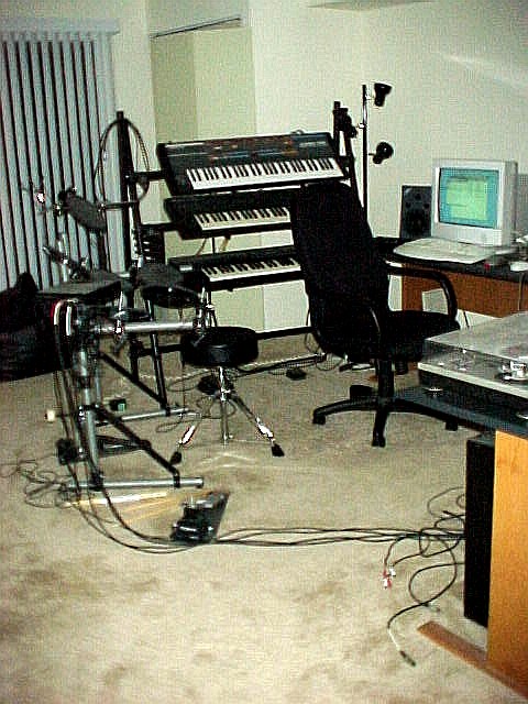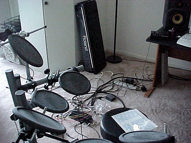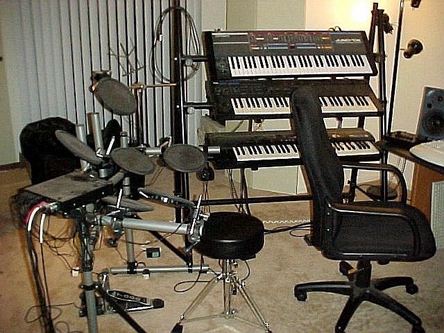 | Keyboard rack and electronic drums |